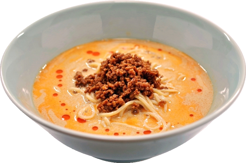 動物由来の食材を一切使っていません。砂糖も白糖を使用せず、てんさい糖を使用しています。大豆ミートの肉そぼろ、ごまと豆乳の濃厚スープ、卵抜き麺にアクセントのザーサイと銀龍特製ラー油がピリッと効いた一品です。